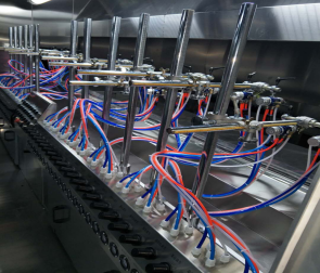 地軌式自動噴涂線介紹地軌式自動噴涂線也叫固定噴槍噴涂線或spindle自動噴涂線,原理就是把噴槍固定起來,根據(jù)工藝要求進行噴涂。其功能集地面自動輸送線,固定自動噴涂,自動烘干T等一體化系統(tǒng),并結(jié)合無塵凈化車間,恒溫控制,廢氣處理系統(tǒng)組成,可以根據(jù)需求設(shè)計兩涂兩烤,三涂三烤,四涂四烤,再加上UV固化設(shè)備。地軌式自動噴涂線特點與優(yōu)勢:1.起到靜電除塵,噴涂、烘干、UV固化自動噴涂流水的功能,適合批量連續(xù)生產(chǎn),產(chǎn)量高,噴涂均勻。2.輸送鏈條與軌道接觸點配置軸承,配合精準(zhǔn)的軌道,運轉(zhuǎn)時輕快平穩(wěn)不抖動,3.靜電除塵系統(tǒng),進口高要靜電發(fā)生器,離子風(fēng)嘴可上下前后機械式調(diào)節(jié),可配合產(chǎn)品大小不同而變化,加上工件自動,除塵無360度死角。4.固定式自動噴槍可用于步進是或者聯(lián)系的在線噴涂,及簡單又實用。采用工件高速自動噴涂,行程及速度可調(diào)節(jié),靈活性大,無死角。5.水簾環(huán)保噴房設(shè)計,氣流順暢潔凈,噴房室內(nèi)導(dǎo)流板機擾流板的精心配置,讓亂流遠離工件,并快速循環(huán)利用。6.UV固化室內(nèi)設(shè)都說進口等,任意調(diào)節(jié)照射距離與角度。可以任意選擇燈工作數(shù)量,根據(jù)照射強度選擇,工件自動旋轉(zhuǎn)設(shè)計,保證了工件照度均勻。好了,以上就是有關(guān)地軌式自動噴涂線介紹,大家學(xué)會了嗎?